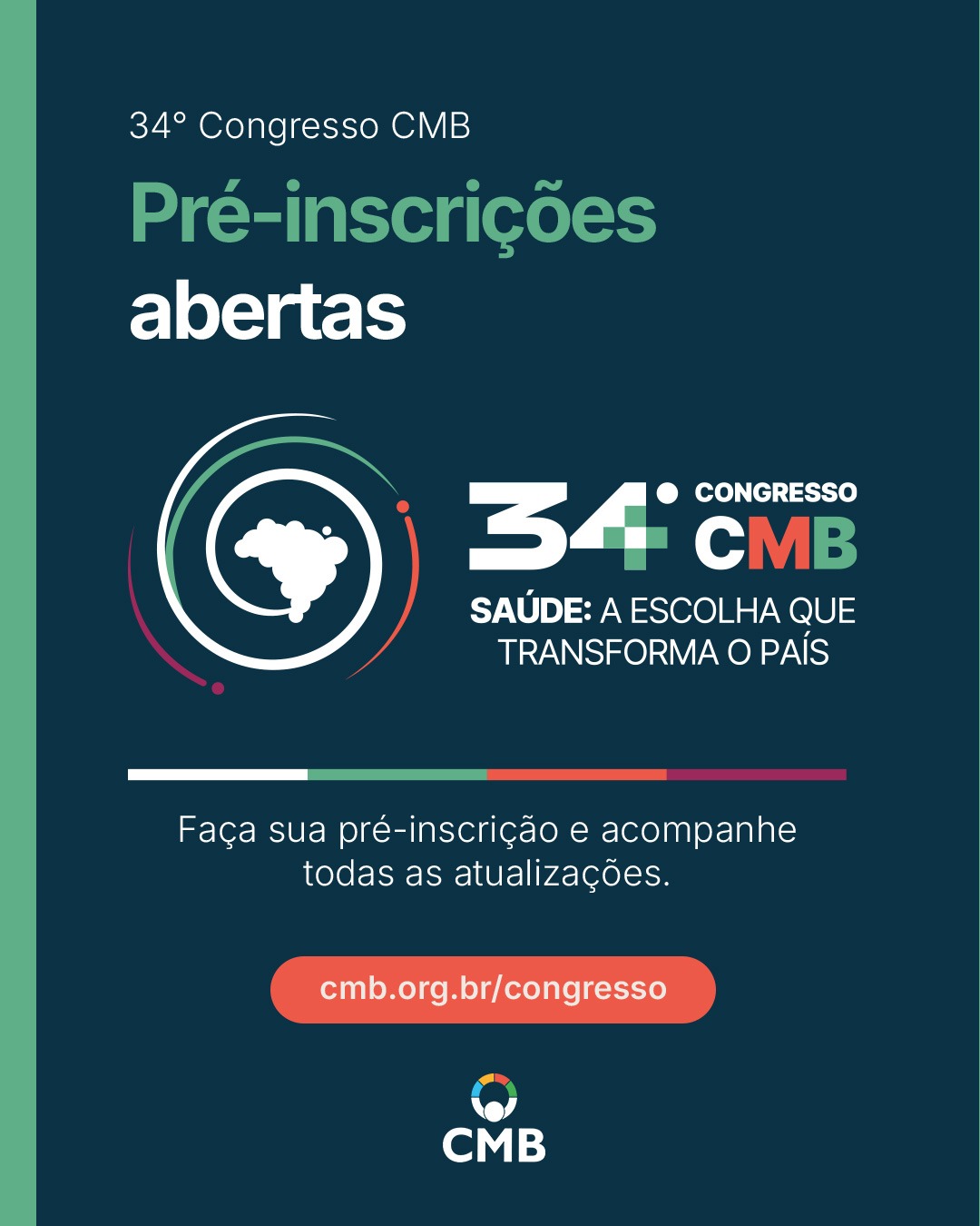 Estão abertas as pré-inscrições para o 34º Congresso Nacional da CMB.